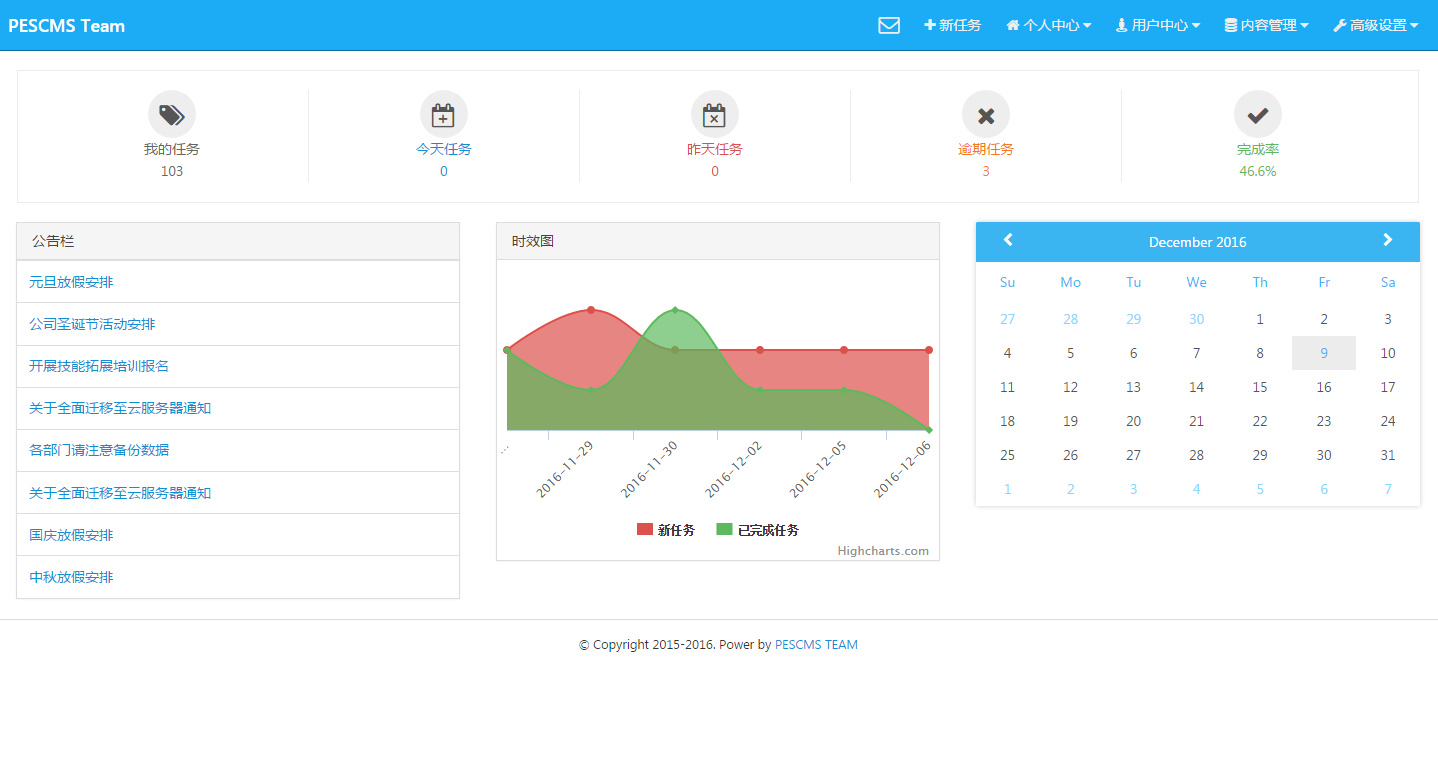 PESCMS TEAM是一款以GPLv2协议进行开源的团队任务管理系统